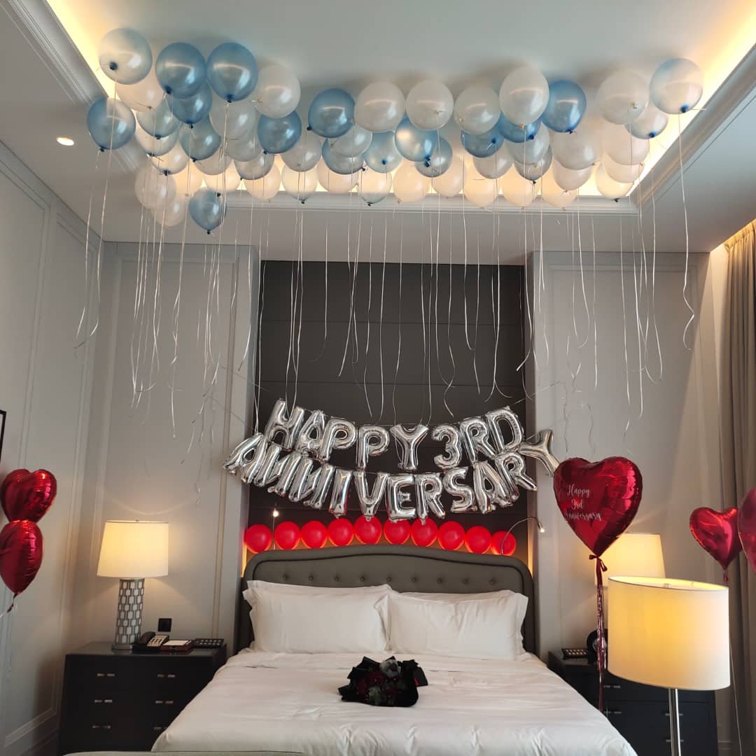 Anniversary Balloon Decorations provide a romantic and celebratory touch to mark special milestones in relationships or business achievements. These decorations typically feature themed balloon arrangements in colors such as gold, silver, white, or red, symbolizing elegance and love. Options may include heart-shaped foil balloons, large number balloons to signify the years, and beautiful balloon garlands combined with flowers or fairy lights for a warm ambiance. Whether for a wedding anniversary, company anniversary, or any memorable date, this service transforms any space into a festive yet intimate setting, making the celebration truly unforgettable for both hosts and guests.Anniversary Balloon Decorations