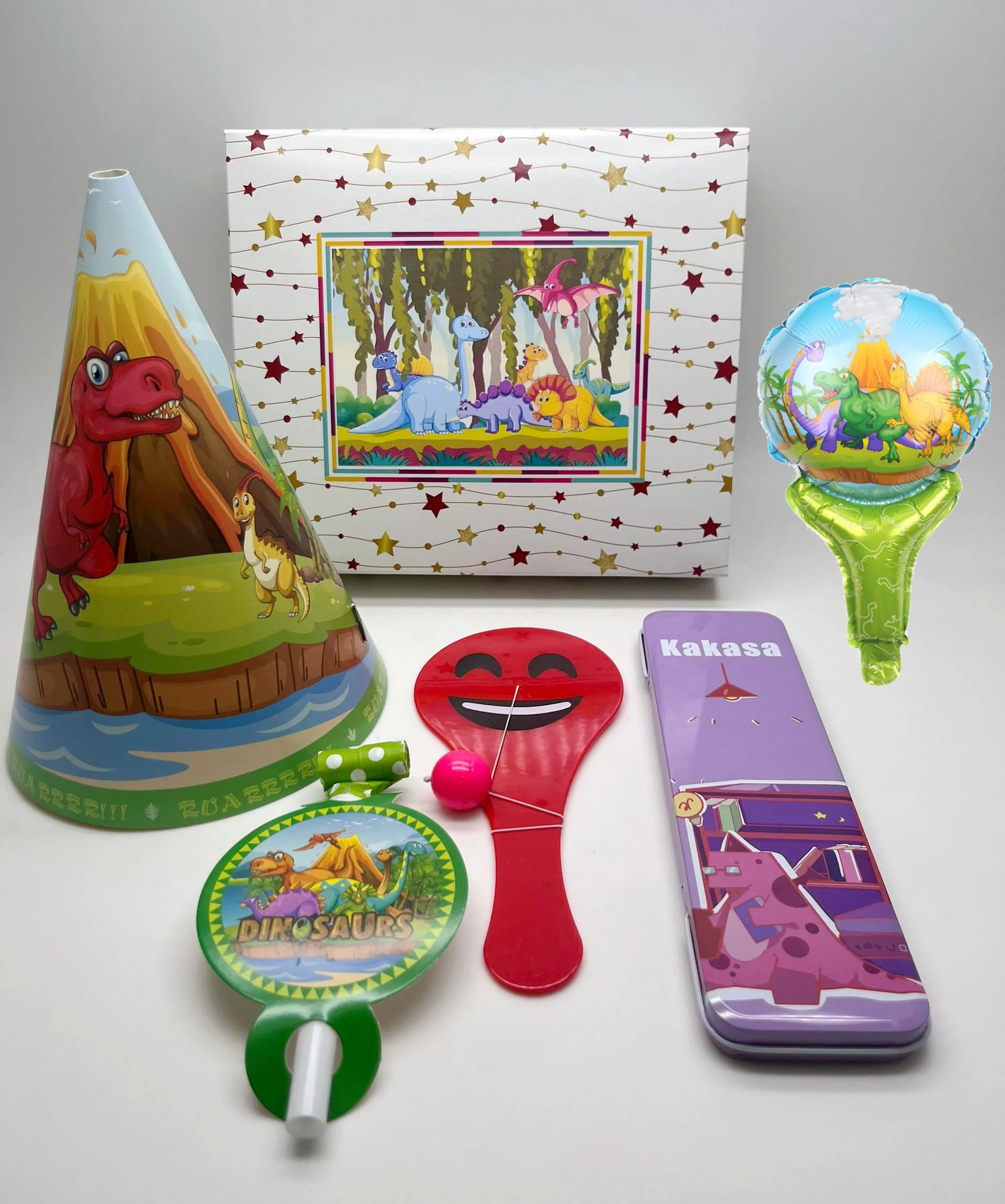 The Dinosaur Party Pack is the ultimate celebration kit for little explorers who love prehistoric adventures. Featuring a colorful assortment of dinosaur-themed tableware, decorations, and party favors, this pack transforms any room into a Jurassic wonderland. Plates, cups, napkins, and banners are adorned with friendly dinosaurs, creating a fun and vibrant atmosphere for birthdays or school events. The included party hats and small toys keep children entertained, while the coordinated design makes setup quick and easy. Perfect for kids aged 3 and up, this all-in-one pack saves time and ensures a memorable event that sparks imaginations and laughter.(Minimum Order Quantity is 6 bags)
